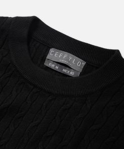 Áo len cổ tròn vặn thừng CF L232S1019251016 – Đen