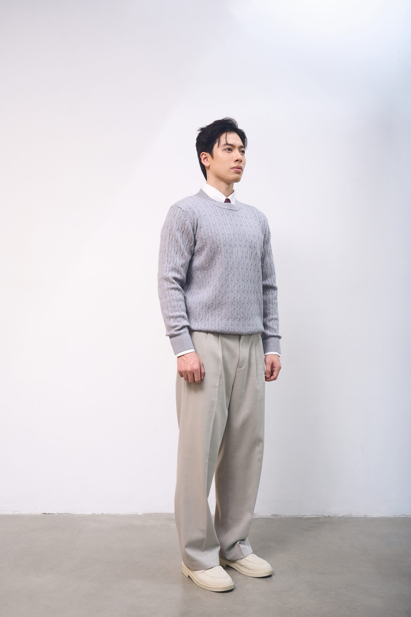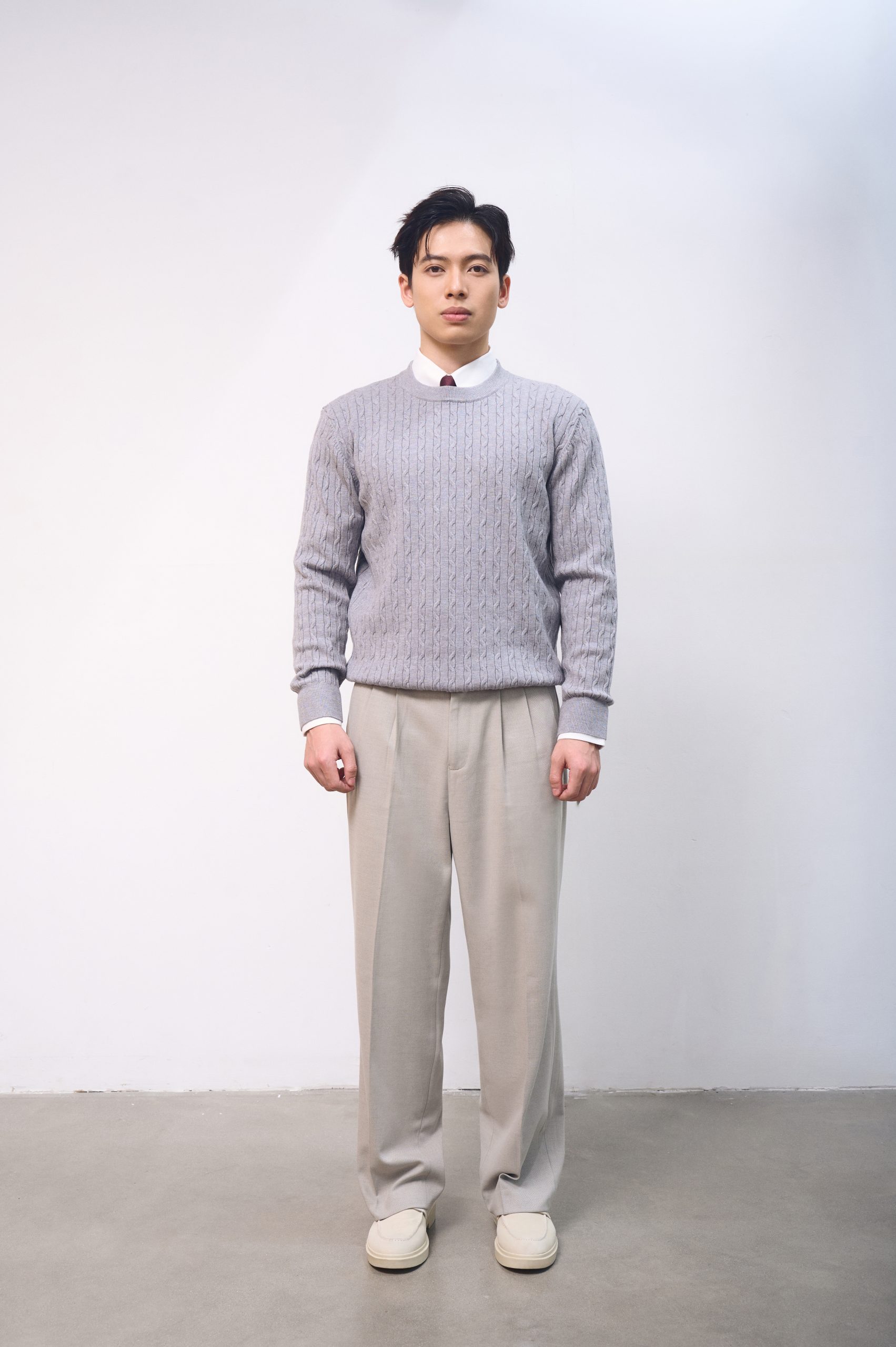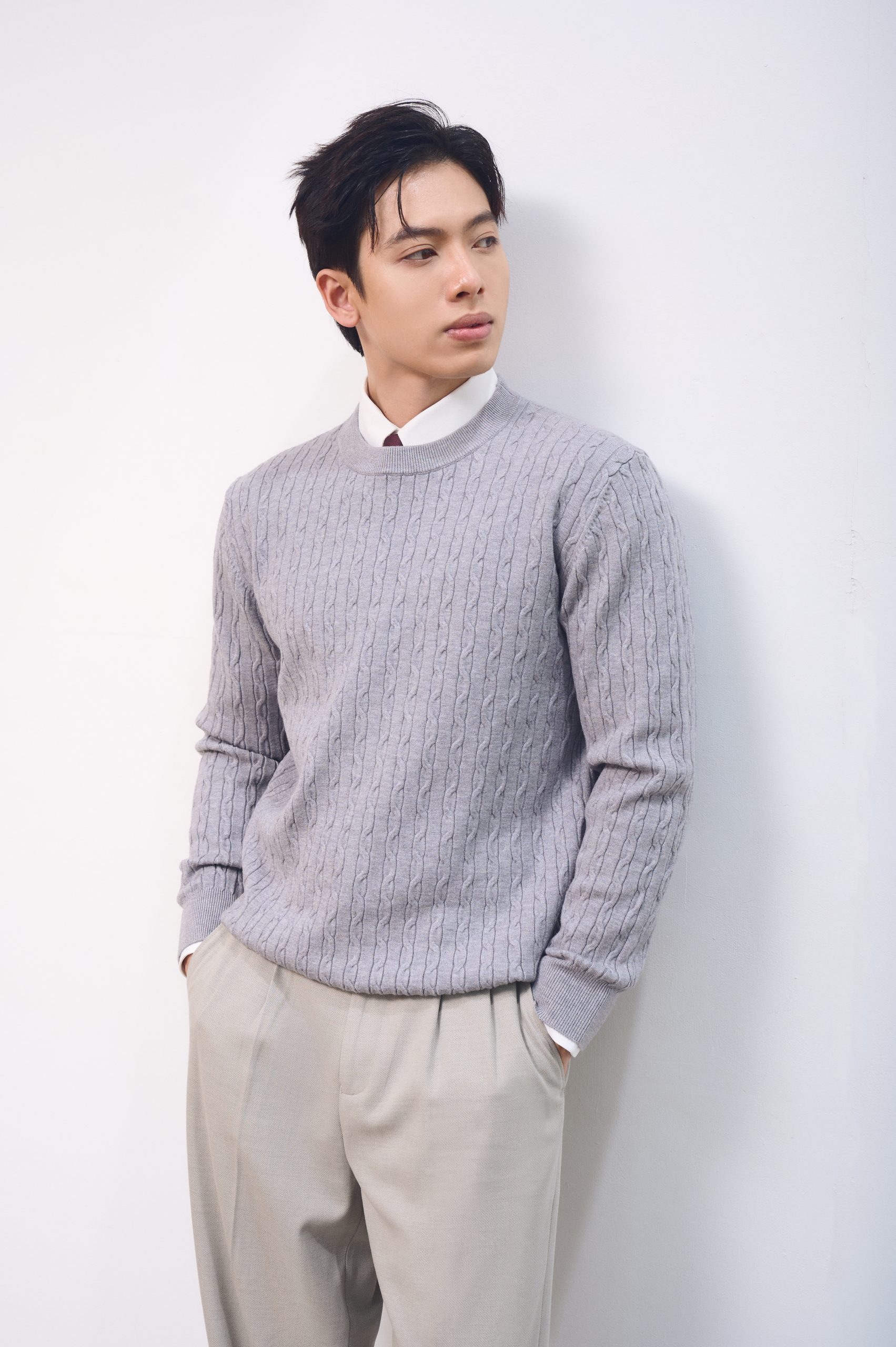 Áo len cổ tròn vặn thừng CF L232S1019251016 – Xám