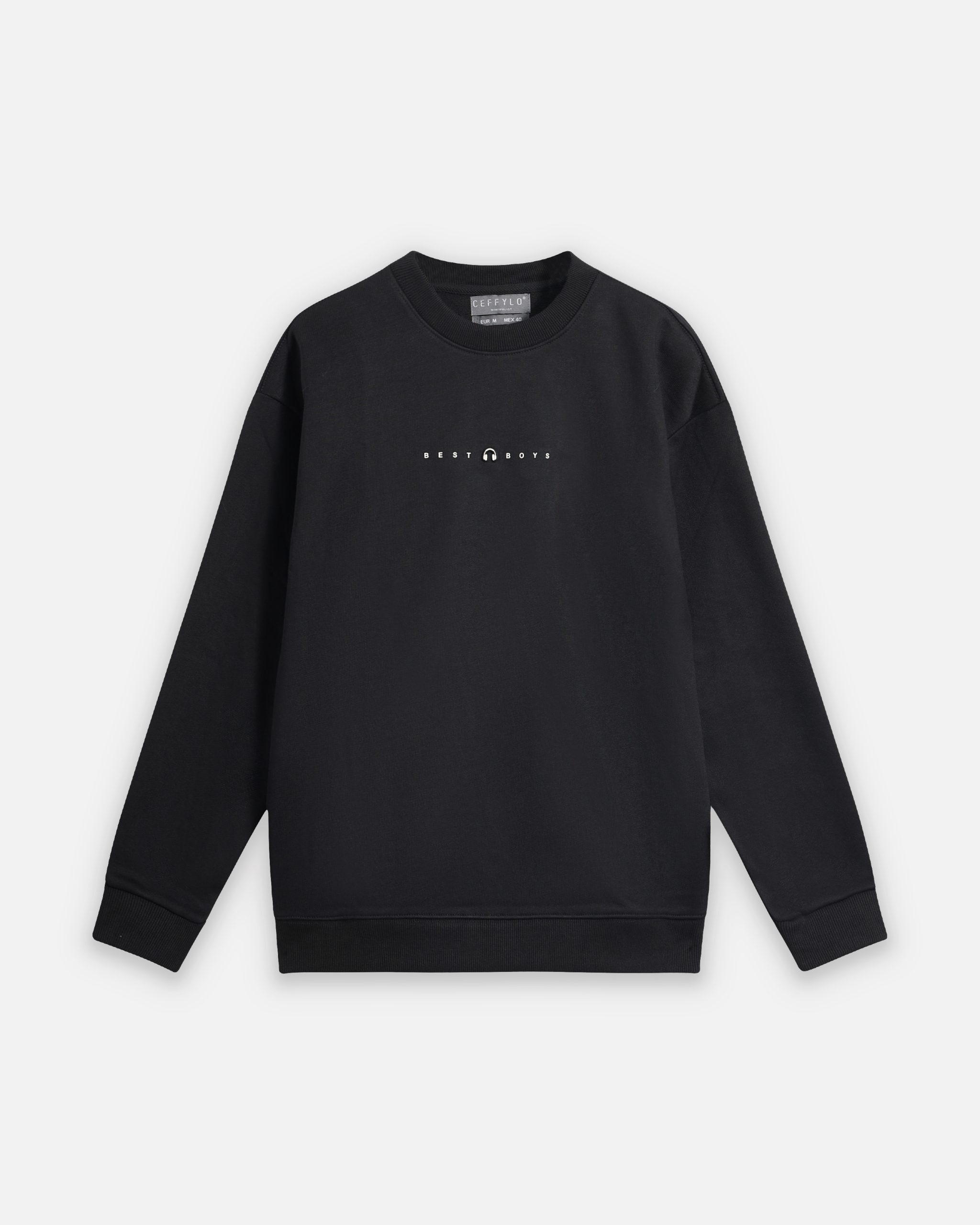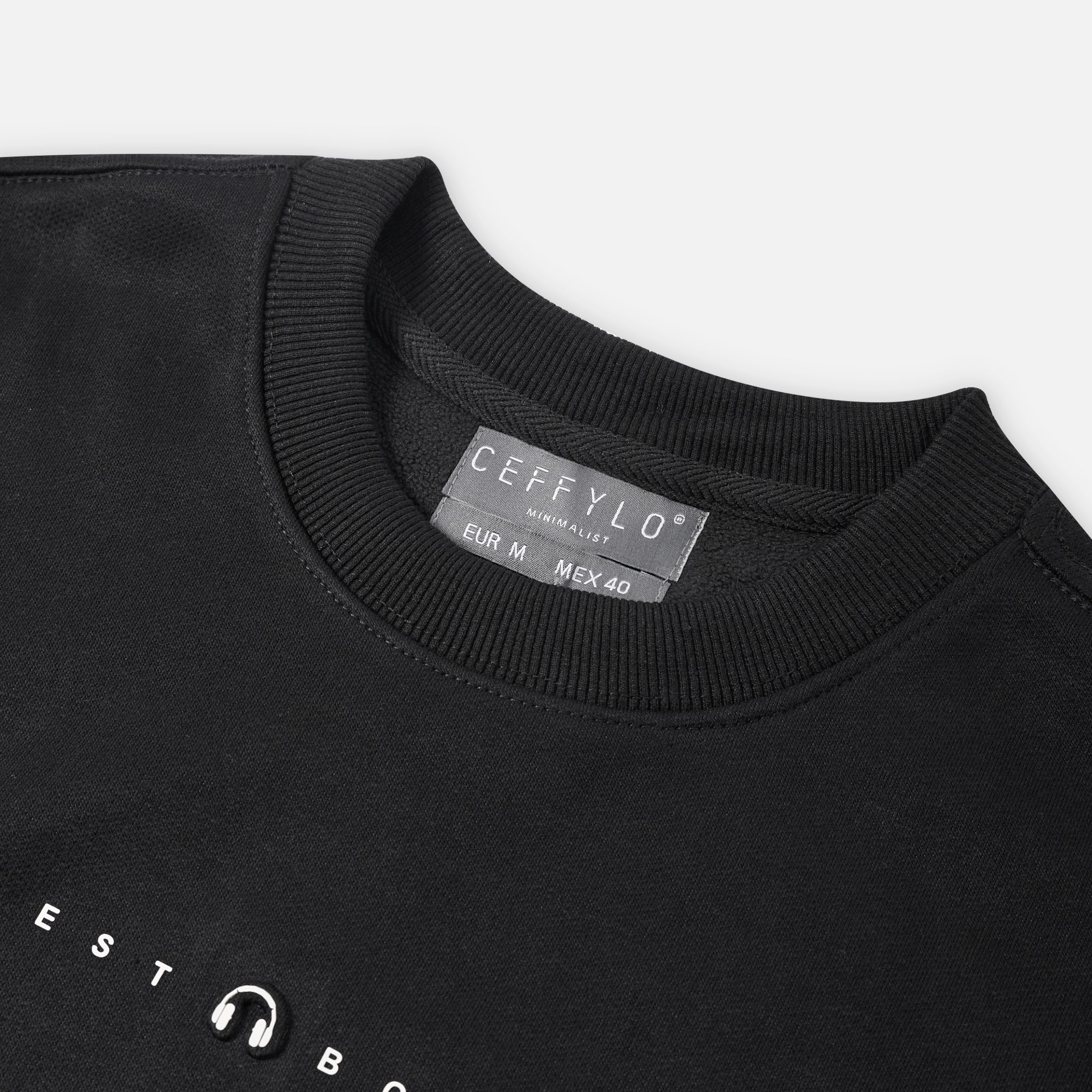 Áo nỉ Ceffylo lót lông ngực in chữ AN232S919251022 – Đen