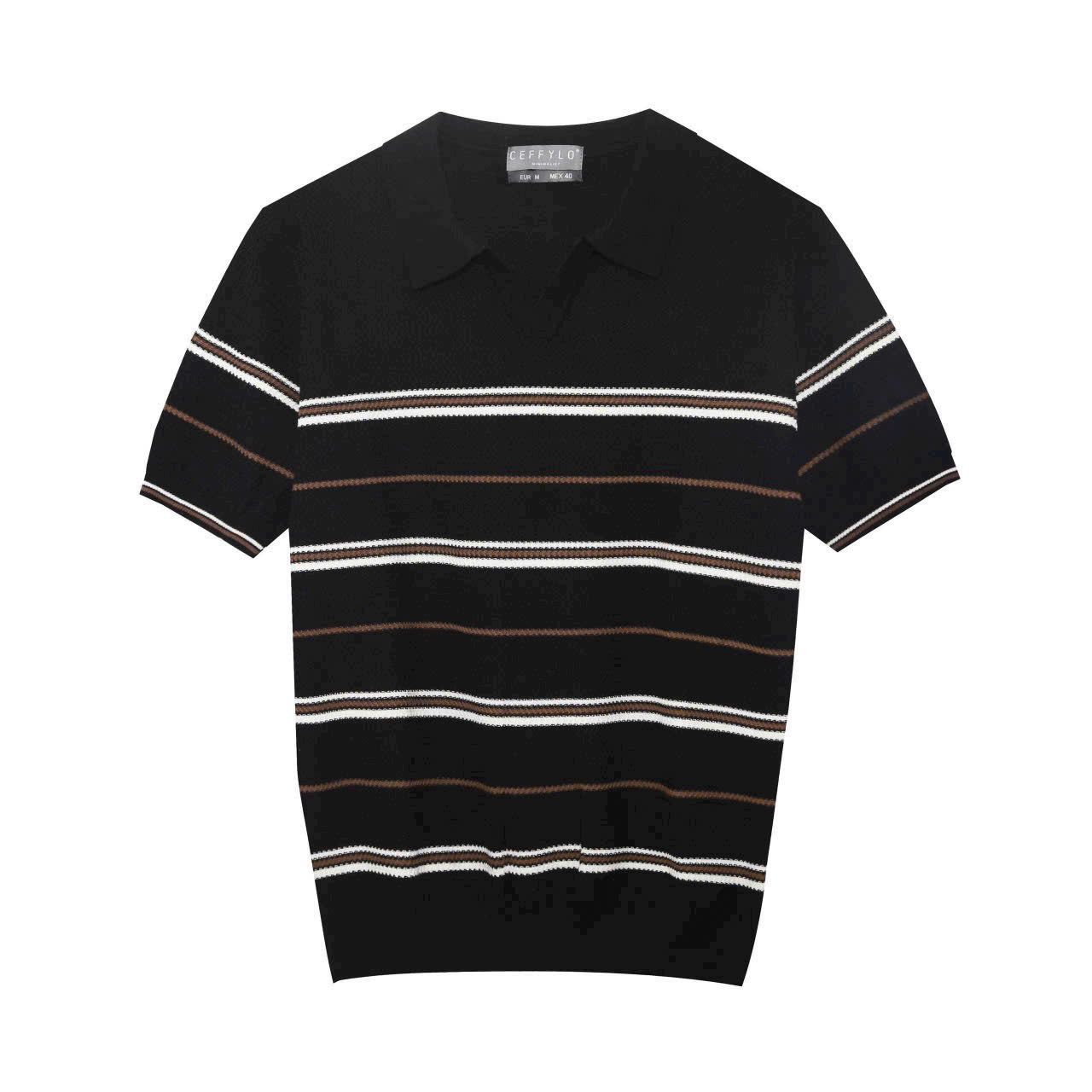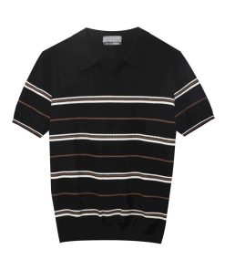 Polo dệt kim kẻ ngang Ceffylo P232S1019250908 – Đen