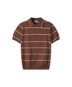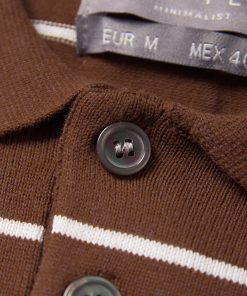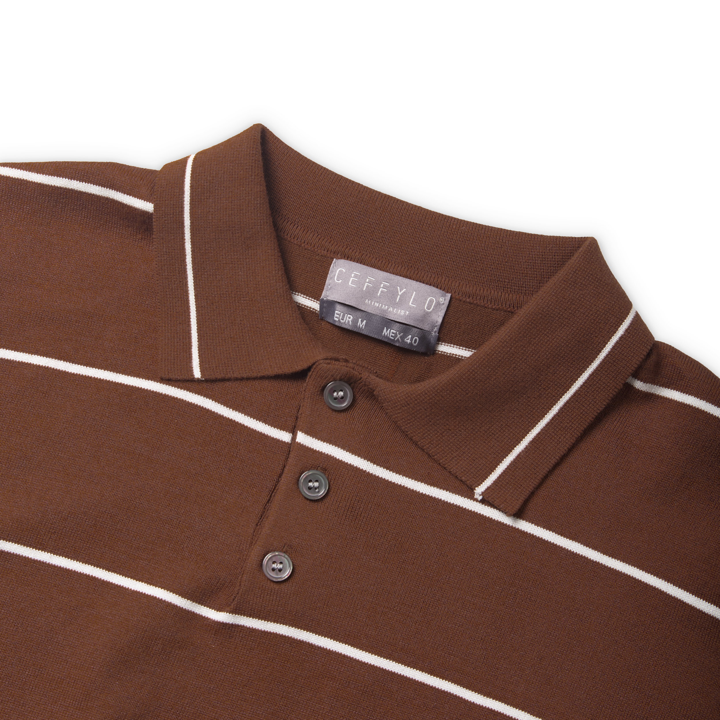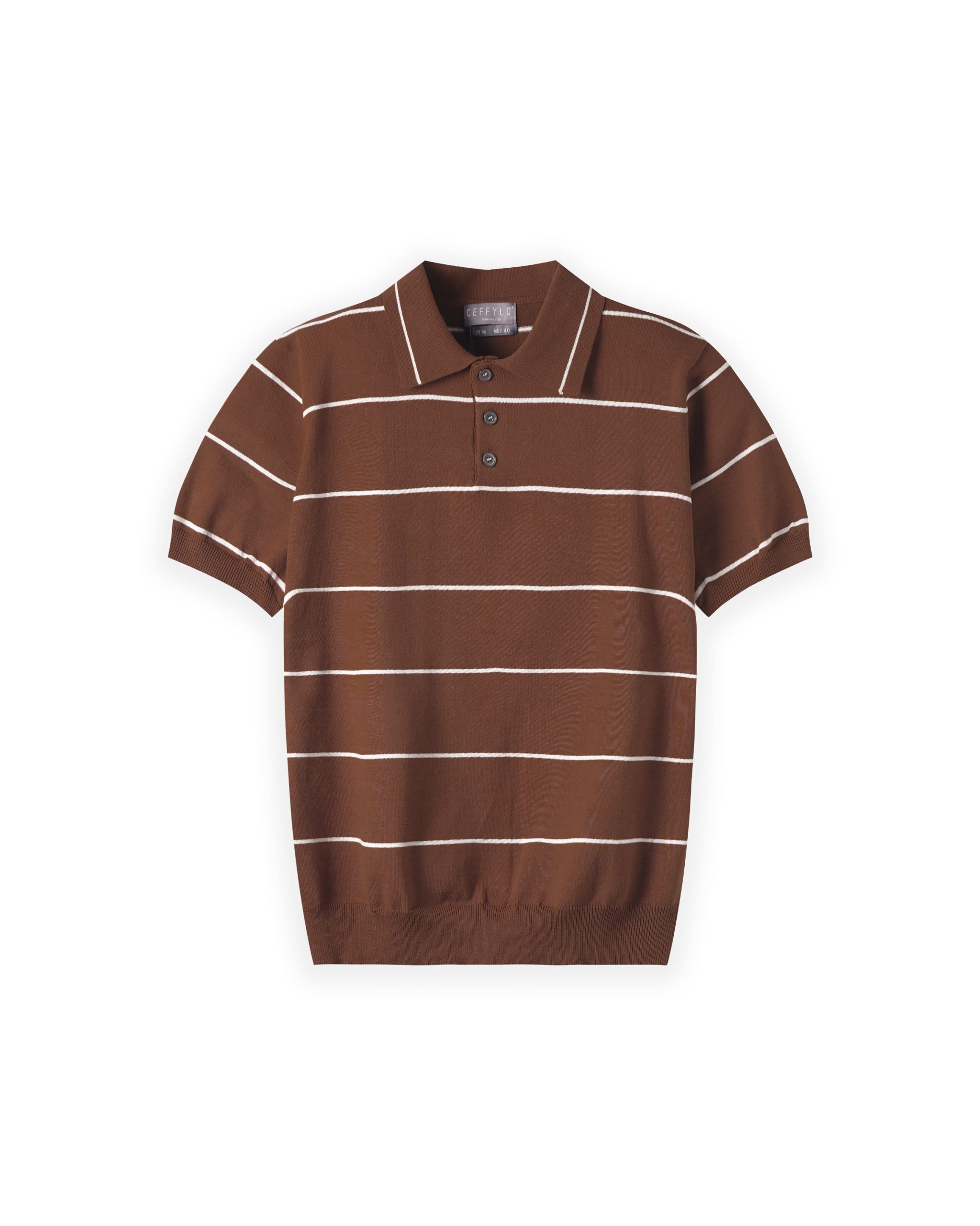 Polo dệt kim sọc ngang đơn CF260403 – Nâu