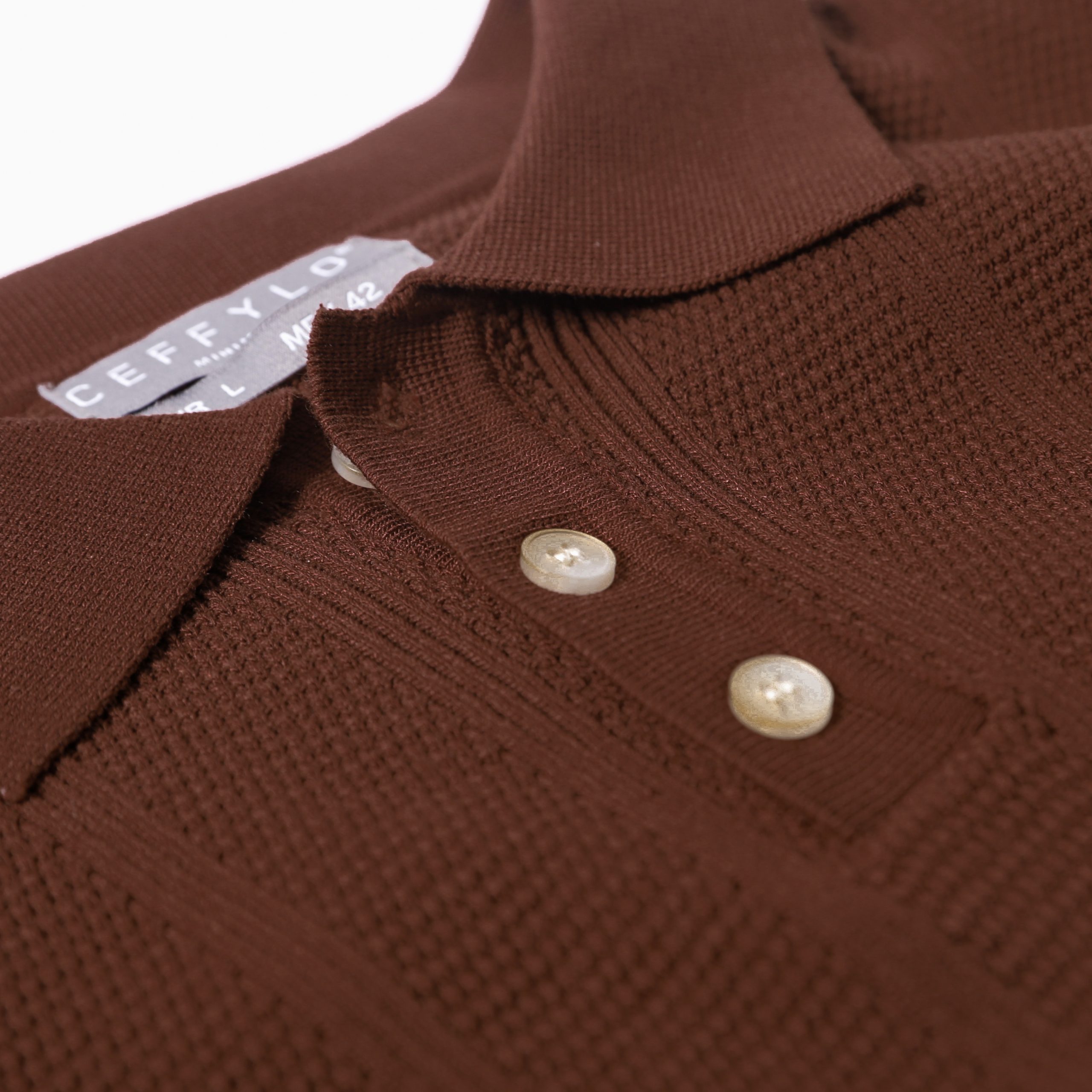 Polo dệt kim trơn Ceffylo 3M L232S1019251020 – Nâu