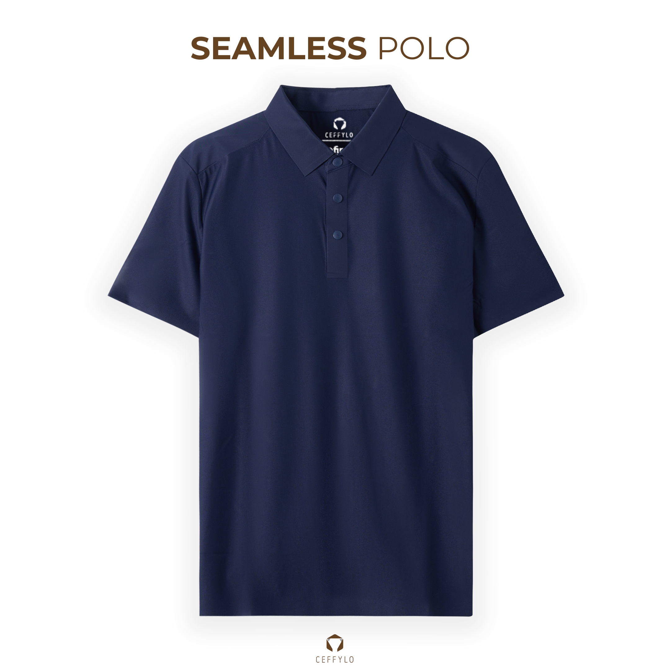 Polo không đường may trơn đáp vai CF260310 – Xanh navy